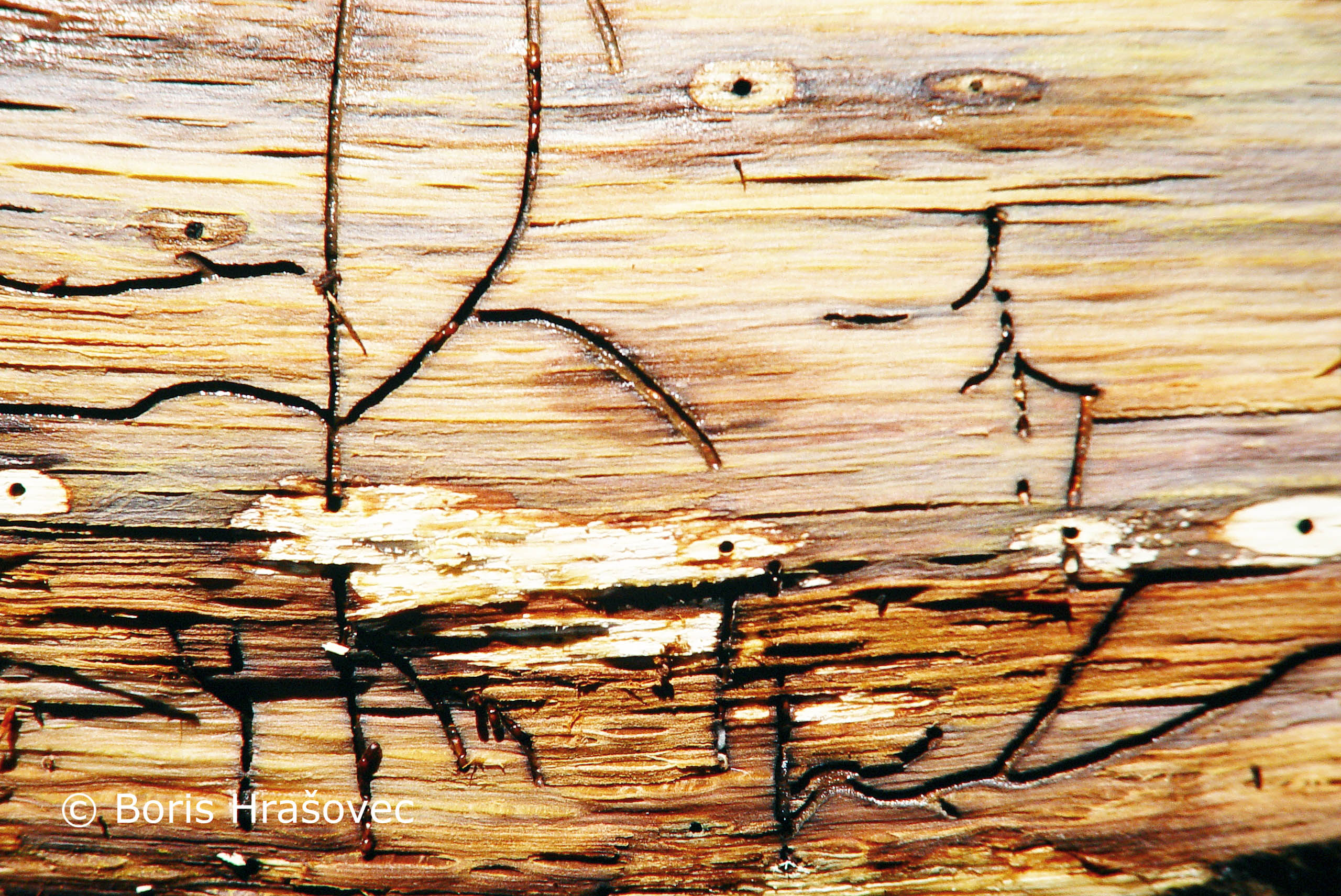 The species is distributed in southern, central and eastern Europe, Ukraine, North Africa and Asia Minor. Siegel (1866) states that the species is “not rare in Carniola, in oaks”. It is common throughout Slovenia, with Koroška and Prekmurje the only regions without recorded presence (Figure 178). Hosts are Quercus canariensis, Q. castaneifolia, Q. cerris, Q. coccifera, Q. ilex, Q. lusitanica, Q. petraea, Q. pubescens, Q. robur and Q. suber. It also occurs less frequently on Acer spp., Fagus sylvatica, F. orientalis, Ulmus laevis, Ulmus spp., Carpinus betulus, Betula pendula, Juglans regia, Castanea sativa and Prunus avium. Most specimens were reportedly trapped, with Quercus petraea, Q. robur, and once Picea abies (hive) recorded as hosts. A xylomycetophagous species, it develops two generations annually, the first swarming in March and April, the second in June and July. The tunnel system is fork-shaped, with up to 12 cm long maternal galleries branching off from the 5-15 cm long radial entrance tunnel in different directions, lying approximately in the same plane. The tunnels penetrate deep into the heartwood. Males measure 2.0-2.5 mm in length, females 3.0-3.5 mm. The beetles are elongated and cylindrical. In both sexes, the apex is flattened and there are four large protrusions arranged in a square shape. In the male, the anterior margin of the neck shield is strongly convex. Males are 8.5 times less abundant than females in the population (Figure 177). X. monographus is an ambrosia beetle that only inhabits freshly felled timber and damaged standing trees. The species causes significant technical damage to oaks.